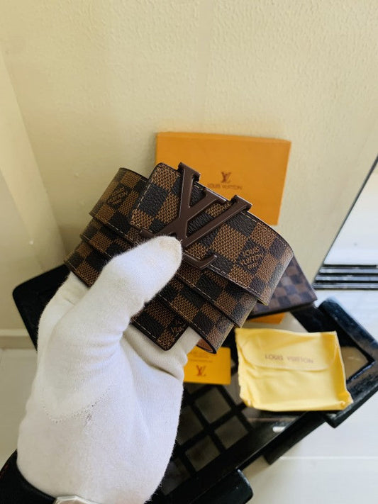 LOUIS VUITTO_N GOLDEN BROWN CHEX PRINTED PREMIUM QUALITY BELT